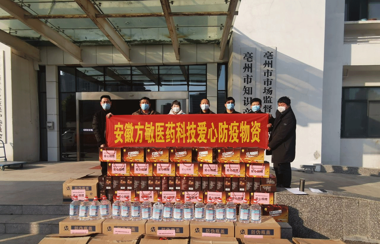 2月09日下午,方敏董事長在區工商聯主席朱烔的帶領下,前往區交通局進行愛心捐贈40桶消毒液、240盒紅棗姜茶、一次性醫用口罩200個。 從區交通局出來,董事長方敏女士、總經理張紅軍又馬不停蹄來到亳州市市場監督管理局進行愛心捐贈100桶消毒液、600盒紅棗姜茶、一次性醫用口罩500個。