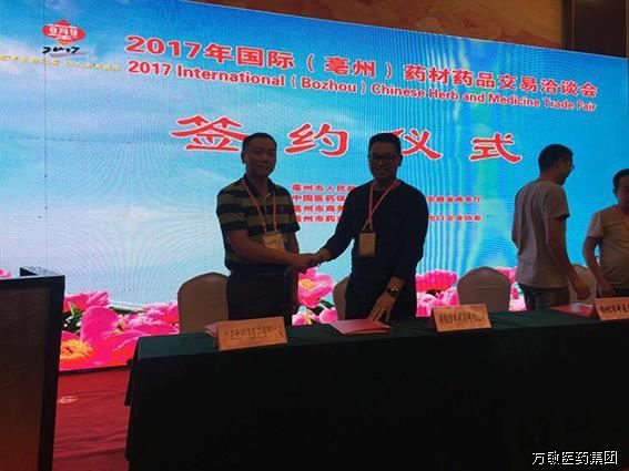9.9日下午,2017年國際(亳州)藥材藥品交易洽談會在亳州賓館舉行,方敏醫(yī)藥科技有限公司總經(jīng)理張紅軍參加了2017年國際(亳州)藥材藥品交易洽談會的簽約儀式。