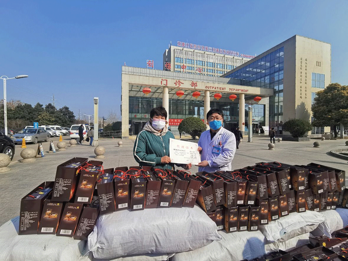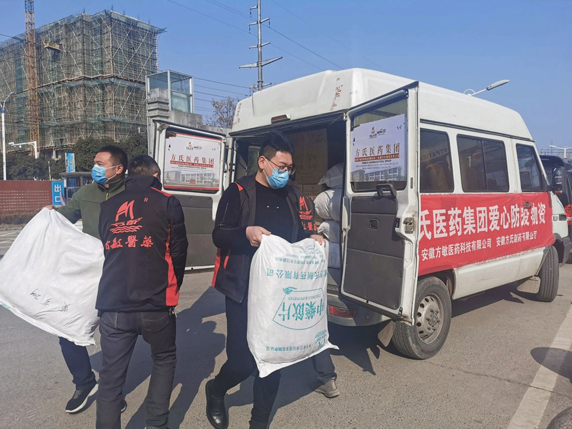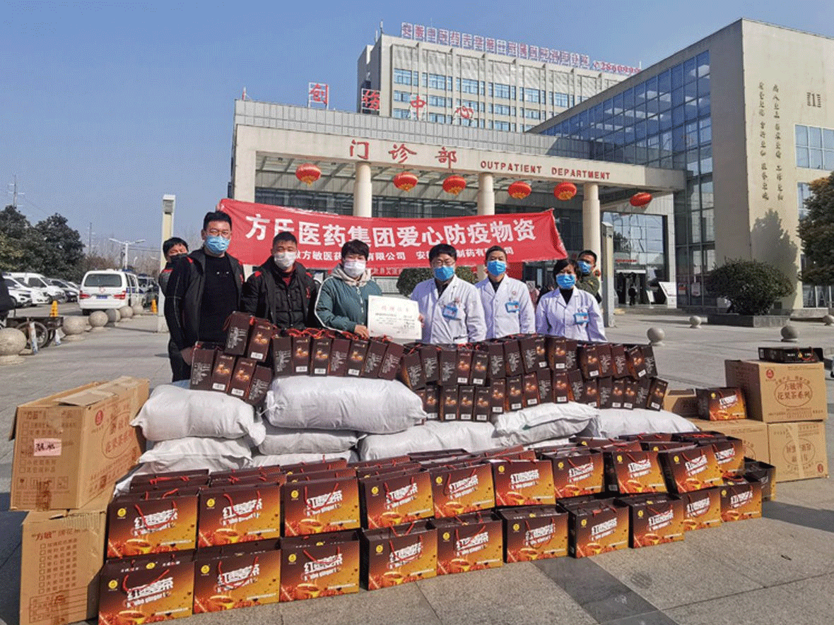 2月3日上午,方氏集團董事長方敏女士及工作人員一行前往渦陽縣中醫院送去防疫專用中藥材及紅棗姜茶一批。