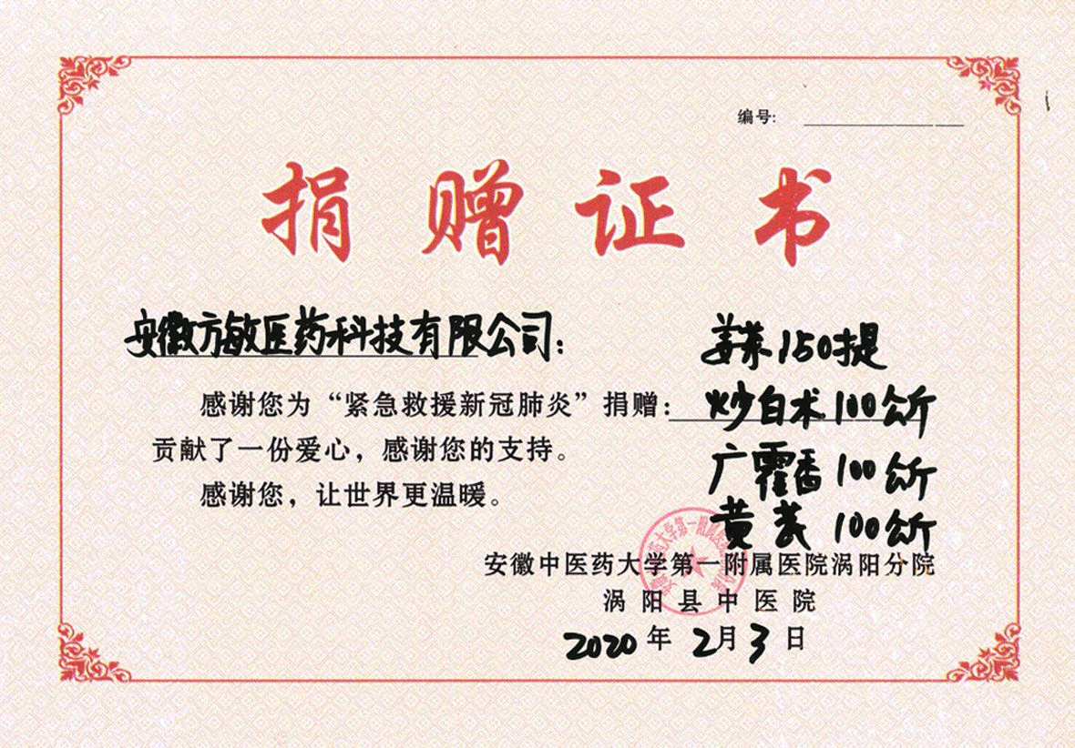 面對病毒疫情蔓延的嚴峻形勢,方敏董事長表示:認真貫徹落實省市文件精神,嚴格按照藥品GMP組織生產,嚴把中藥材采購關、生產控制關、產品檢驗關,保障產品質量和疫情防控藥品供應和價格穩定,充分履行社會責任,作出我們應有的貢獻。