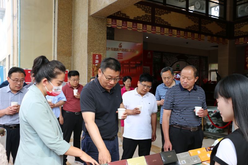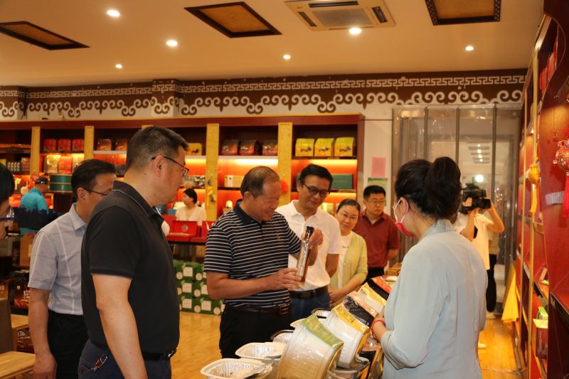 湯主席一行深入企業詳細了解公司生產的健康養生系列產品,目前生產經營狀況、市場銷售等情況。公司總經理王靜向領導匯報了情況,今年疫情過后,企業的生產、銷售情況很好,各項經濟指標同比穩步增長。